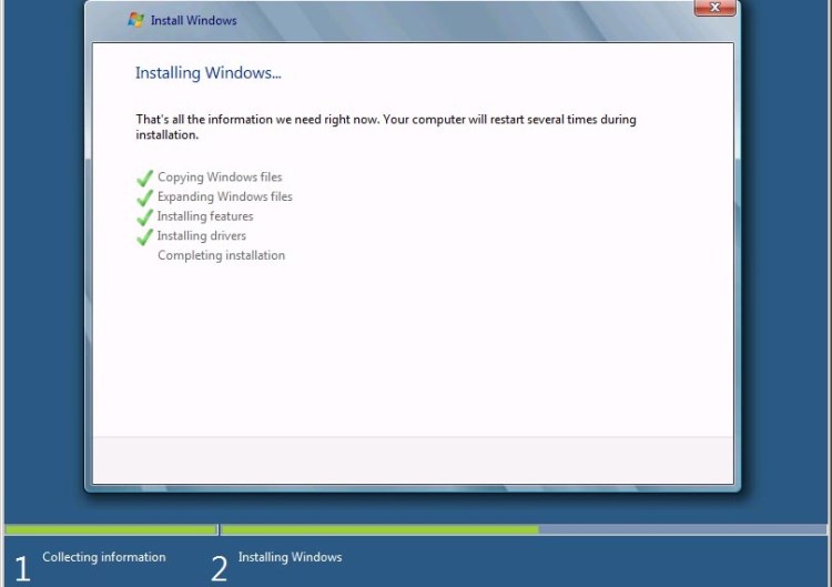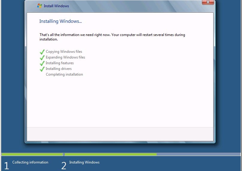 Once the Expanding Windows files, Installing features and Installing drivers are done,