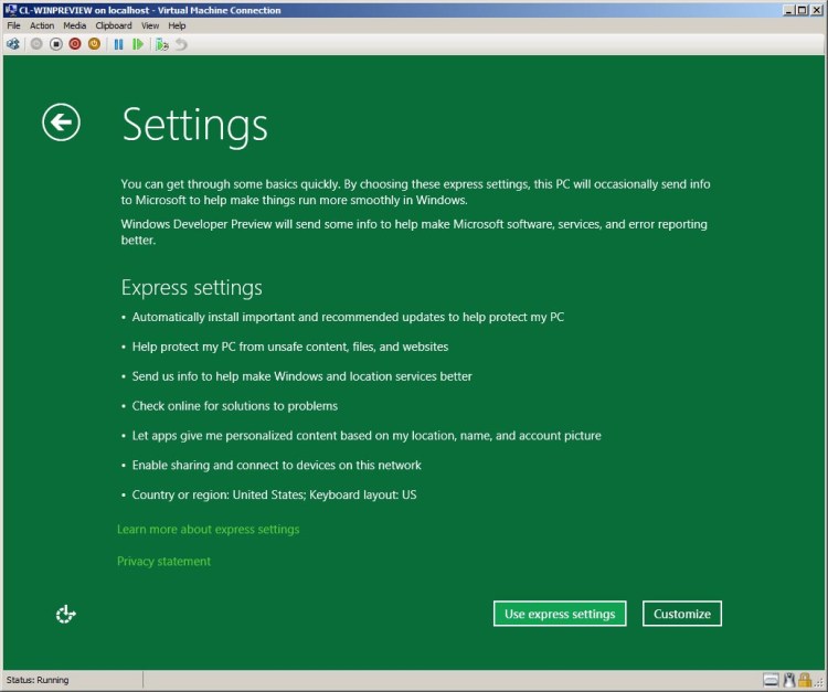 After the restart, you’ll get the Windows Developer Preview screen while updating the registry settings
