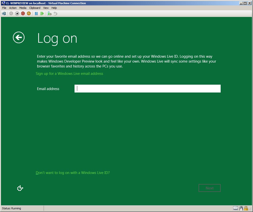 Provide a Windows Live email address then click Next, on the next page it will ask for an Email address and Password then click next to proceed and finalized your settings