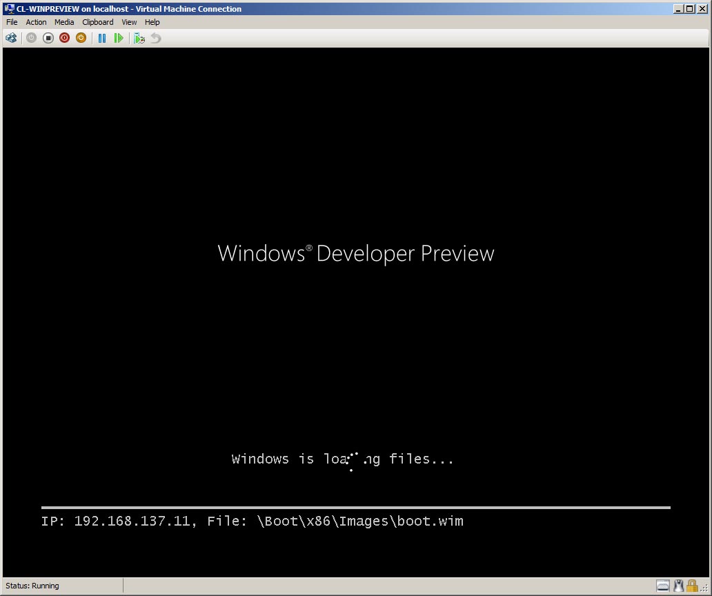 Here’s how an attended installation of Windows Developer Preview via Windows Deployment Services looks like (too excited and opted not to create an answer file)