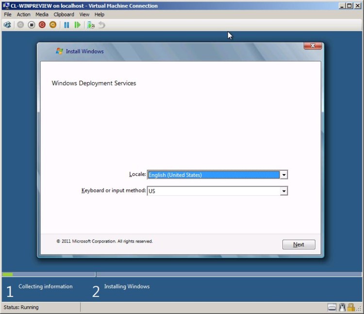 After the Setup initiates, the WDS screen will appear and will ask for your Locale and Keyboard and input method