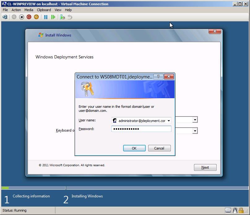 I have setup one of my member server’s WDS Role (link here: on how to setup a WDS role) and added the Install.wim file of Windows 8 Developer Preview.