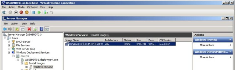 The developer preview did not appear in my list of operating systems to install until I restarted WDS though.