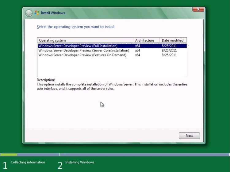 Windows Server 8 Developer Preview Installation Screen Caps