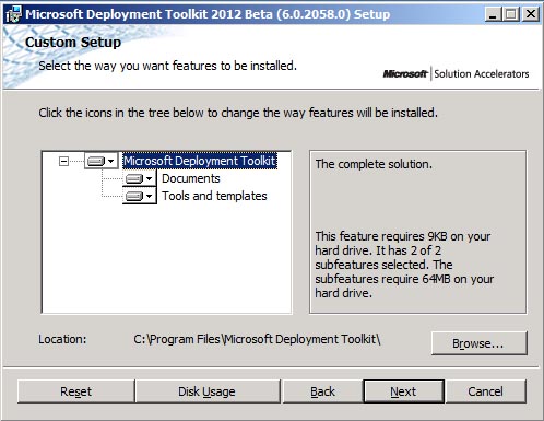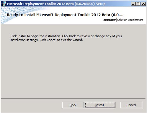 Below are the screen caps of MDT 2012 Beta 2 installation:
