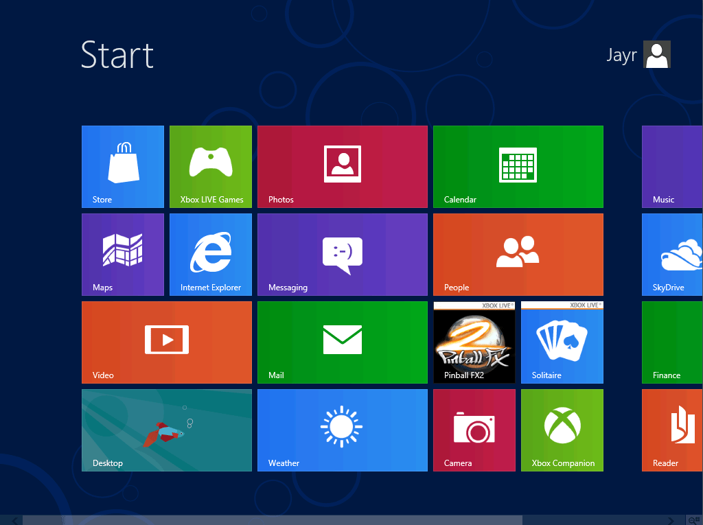 In the Start screen you can access Windows built-in apps and of course, your desktop.