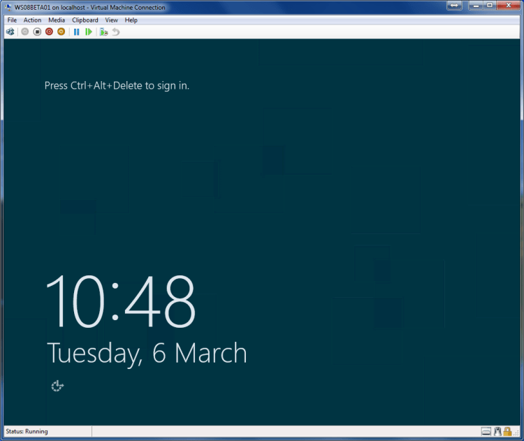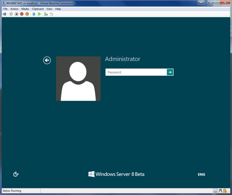 In your Hyper-V Manager start and launch your Windows Server 8 Beta VM.