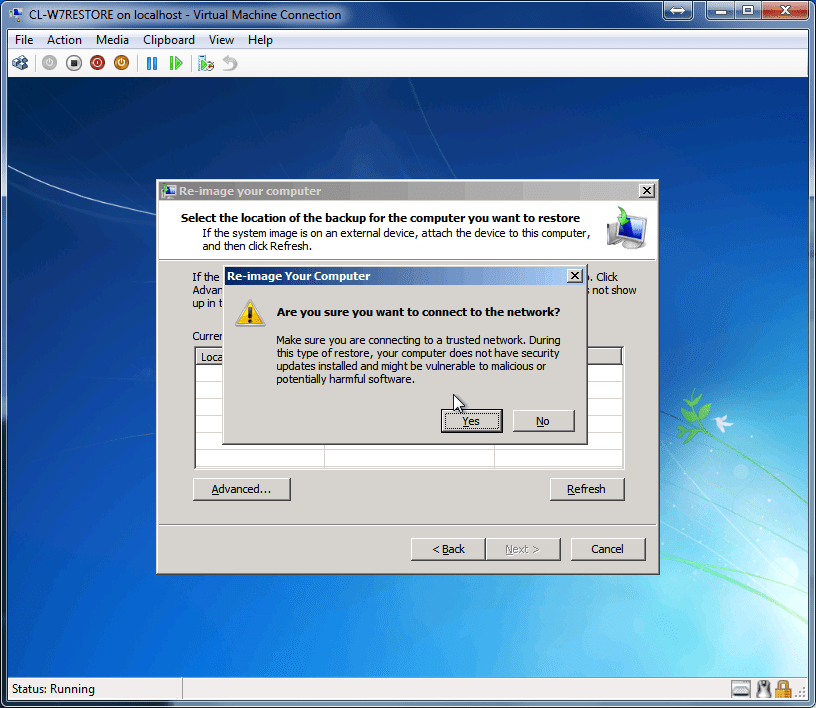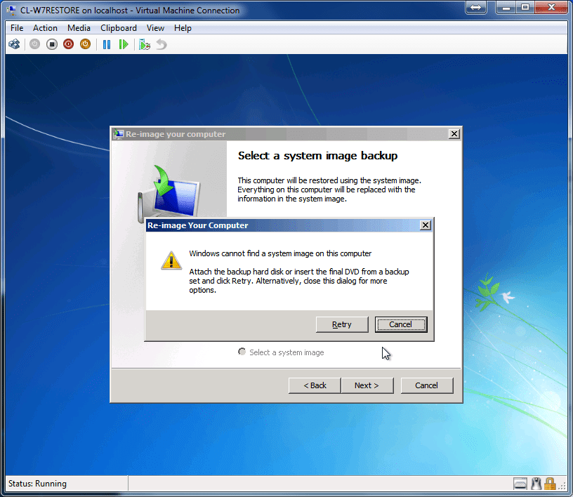 The Re-image your computer wizard will try to search for a system image, just hit Cancel if you see this this warning prompt.