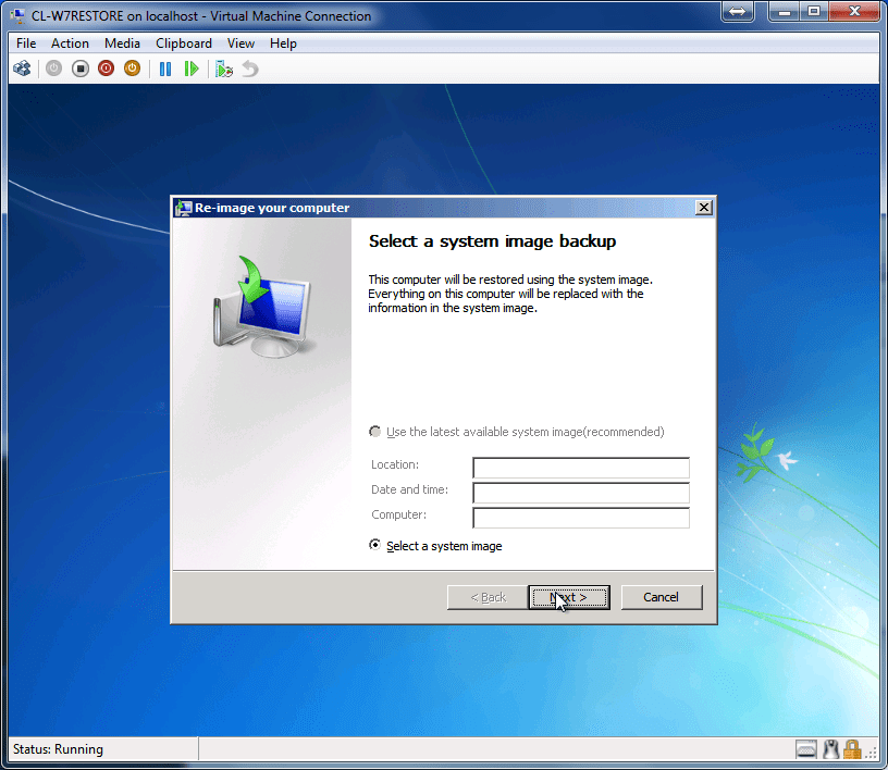 This post will show the step by step process on how to create a Windows 7 system image of a physical machine and restore it in a virtual machine on a lab environment.