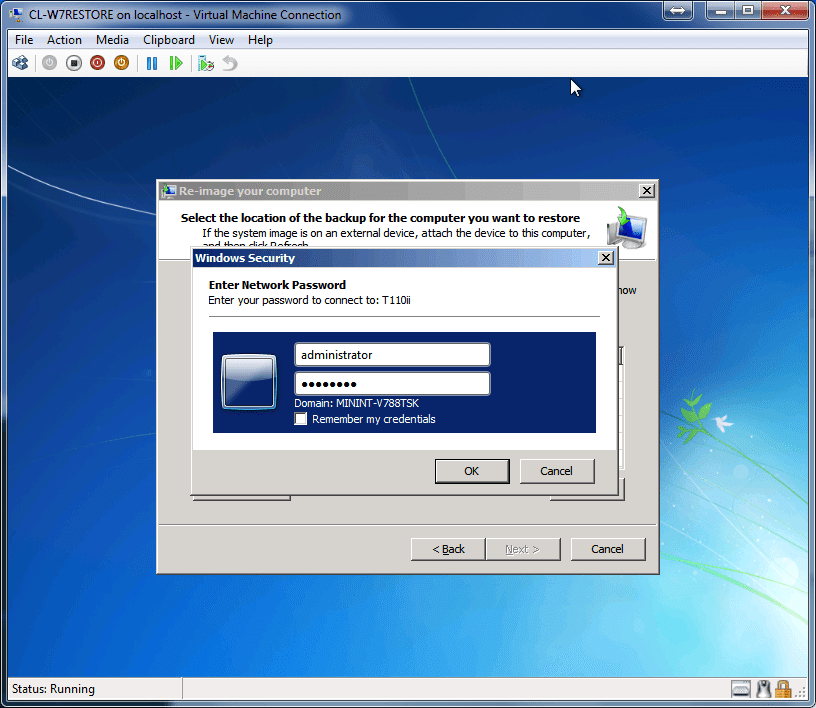 The wizard will then try to connect to the network and will probably ask you to enter the network location of the image and an account with privileges to access to it.