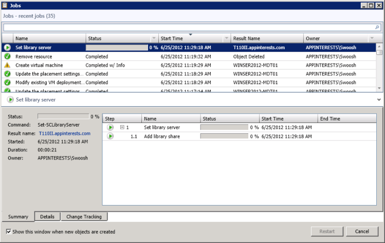 Click the Finish button then a job will be created to deploy the SCVMM agent to the Hyper-V host.