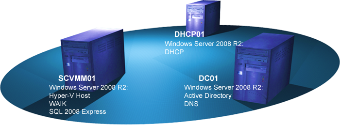 I will install SCVMM 2012 to SCVMM01 machine where an existing Hyper-V role is running with Windows Automated Installation Kit (WAIK) and SQL Server 2008 R2 Express installed as part of SCVMM system requirements.