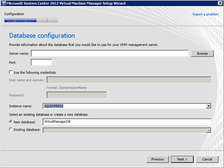 Posted by debysandra | December 11, 2012, 3:04 pmAre you using SQL Server 2008 R2 Express for a POC? Microsoft system requirements for SCVMM 2012 state that it requires a full version.