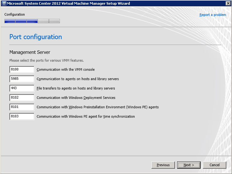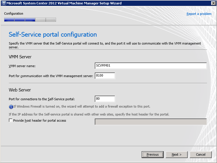 If you accept the VMM server name and ports in the Self-Service Portal configuration window, click Next.