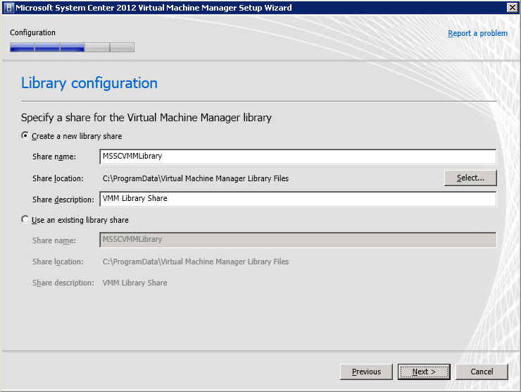 To create a new VM we need to add the Operating System installer’s ISO file in the library, below will show how to Add Library Share in SCVMM 2012.