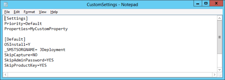 In order to change the default text “IT Organization” locate the customsettings.ini in your deployment share folder, it should be in the DeploymentShare\Control.