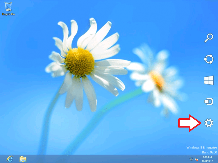In you Windows 8, access Settings from the Charms menu (move your mouse to the upper or lower right corner of your screen or in your keyboard, simply press Windows Key + C)