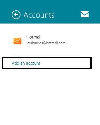 Under Accounts click Add an account