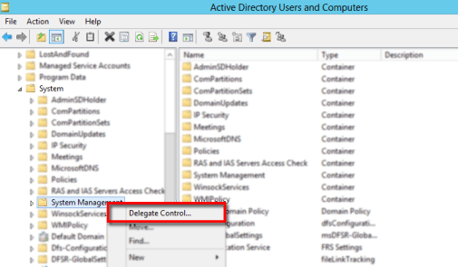 Step 3. Create System Management Container and Delegate of Permission.
