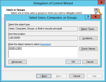 • Delegate SCCM Servers Full Control access.