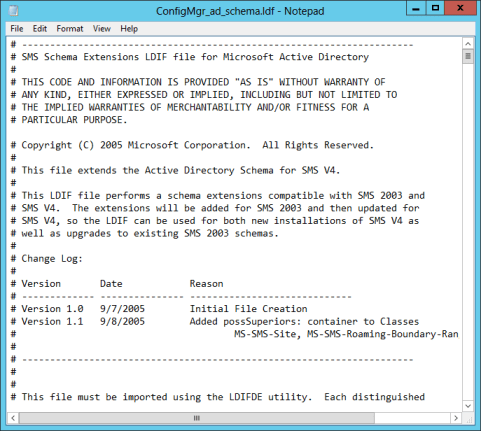 When you run the Extadsh.exe its actually running ConfirMgr_ad_schema.ldf, this LDF file contains the instructions for what needs to be changed in Active Directory to support the schema extensions.