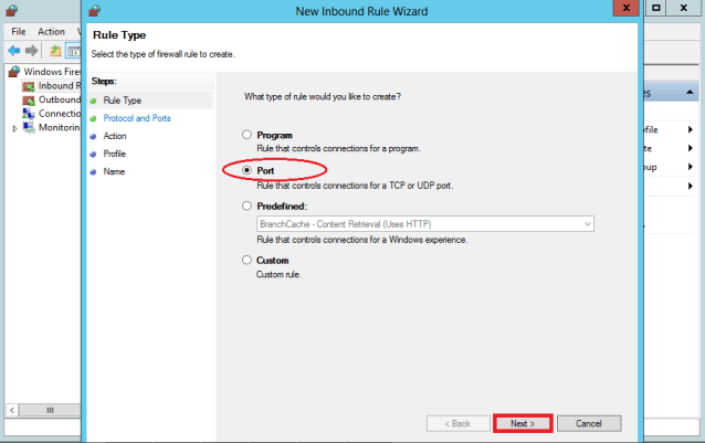 In the Rule Type dialog box, select Port and then click Next.