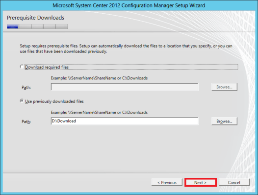 In the Prerequisite Downloads, choose where b/w the 2 options and click Next.