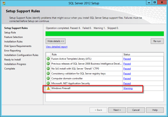 When you get the Windows Firewall warning in the Setup Support Rules this means that you need to open TCP port 1433 and 4022 for SQL replication, Here are the steps: