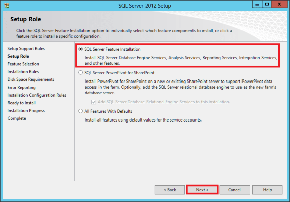 In the Setup Role by default, SQL Server Feature Installation is selected, click Next.