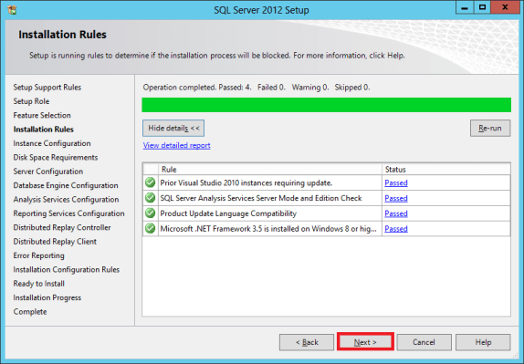 SQL Server 2012 is ready to install, click the Install button.