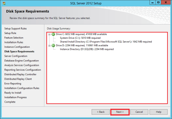 In the Disk Space Requirements, click Next.