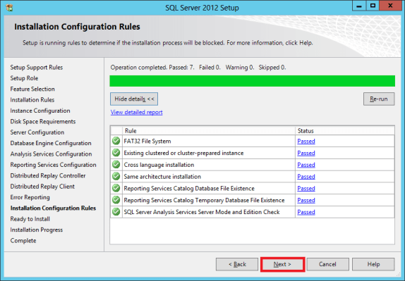 In the Installation Configuration Rules window, once the checking is done, click Next.