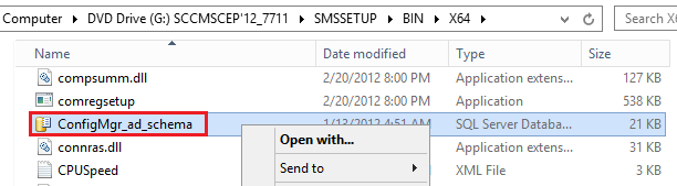 After installing IIS and the other features, mount the installation file of System Center 2012 Configuration Manager and browse to its directory <Drive>:\SMSSETUP\BIN\X64\