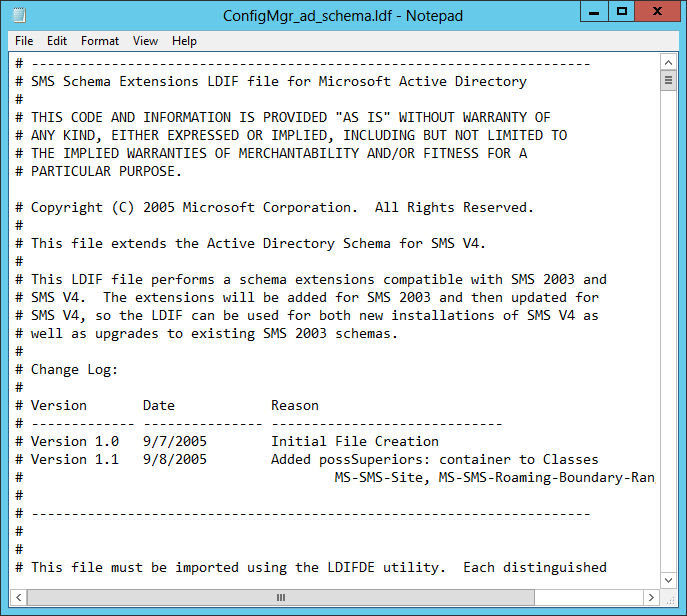 When you run the Extadsh.exe its actually running ConfirMgr_ad_schema.ldf, this LDF file contains the instructions for what needs to be changed in Active Directory to support the schema extensions.