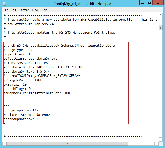dn: CN=mS-SMS-Capabilities,CN=Schema,CN=Configuration,DC=x  this is the path of where the change is going to happen