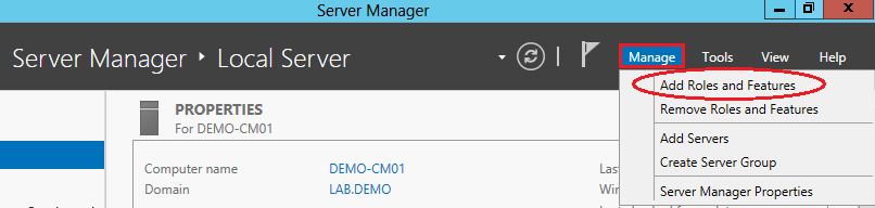 In DEMO-CM01 login as LAB\Administrator