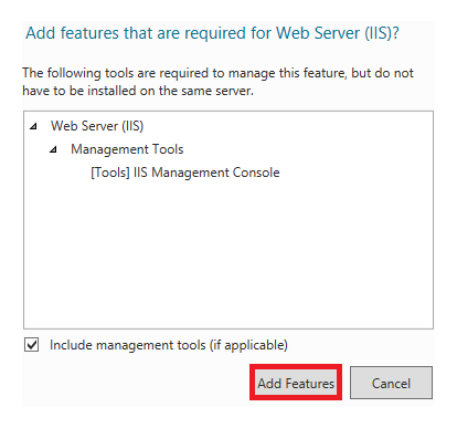 When prompted to “Add features that are required for Web Server (IIS)?” click the Add Features button.and click Next.