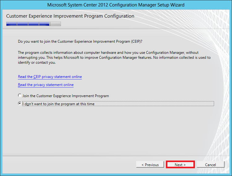 You may or may not join the CEIP. Click Next.