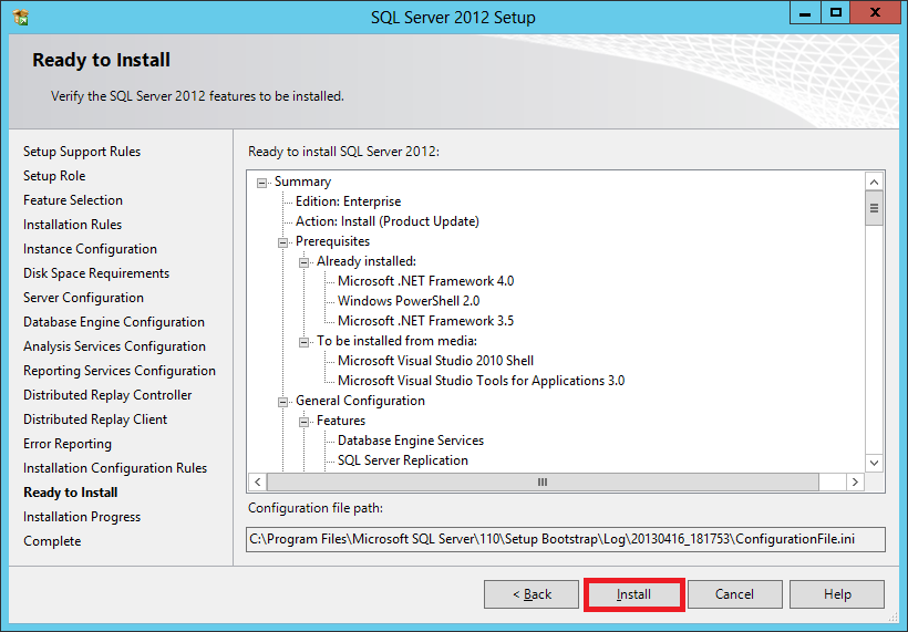 SQL Server 2012 is ready to install, click the Install button.