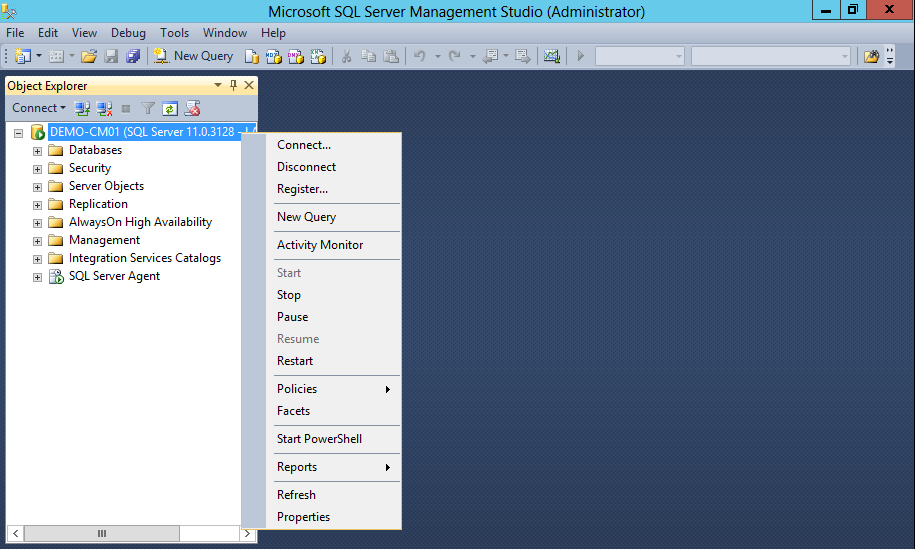 Right-click on the Sequel Server, DEMO-CM01 and view its Properties.