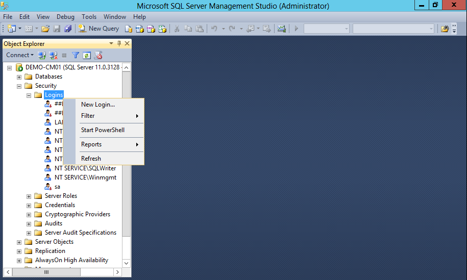 In the Security, make a right-click under Logins and select New Login…