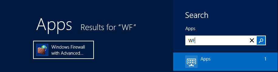 Press Windows logo key‌ Windows logo key+ C to launch Charms and in the Search Apps box, type wf.msc for Windows Firewall with Advance Security.