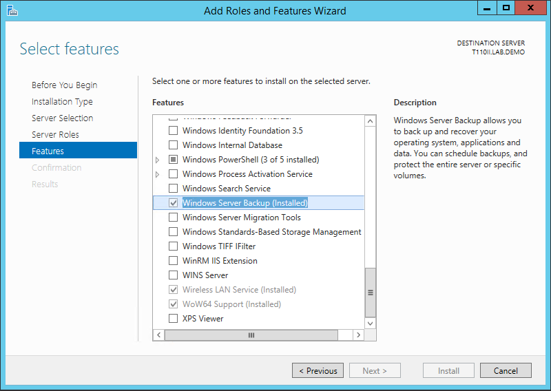 Windows Server Backup can be installed as an added feature of your Windows Server 2012 or Windows Server 2012 R2.
