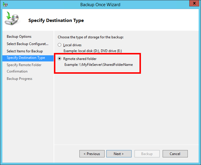 Select where to backup your VM(s) in this scenario I will backup it up to my network share.