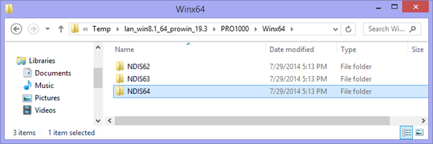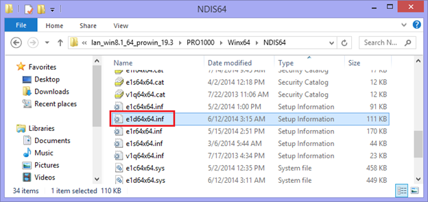 2. Once extracted, go to this directory C:\Temp\lan_win8.1_64_prowin_19.3\PRO1000\Winx64\NDIS64 and open e1d64x64.inf