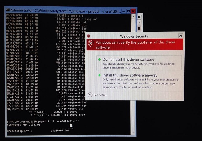 1. install the driver using pnputil –i –a D:\NDIS64\ e1d64x64.inf