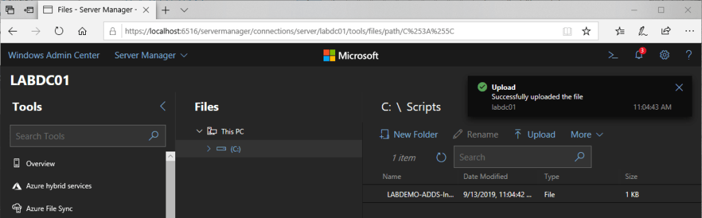 You’ll get a notification once the file has been uploaded successfully to the C:\Script directory.
