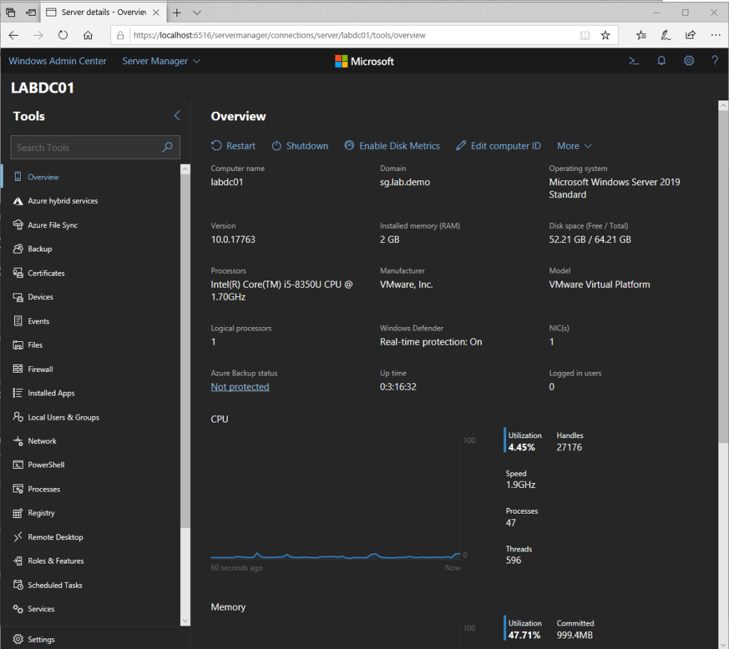 The next thing to do is to manage your newly added server. In the Windows Admin Center > Server Manager double click the server name.