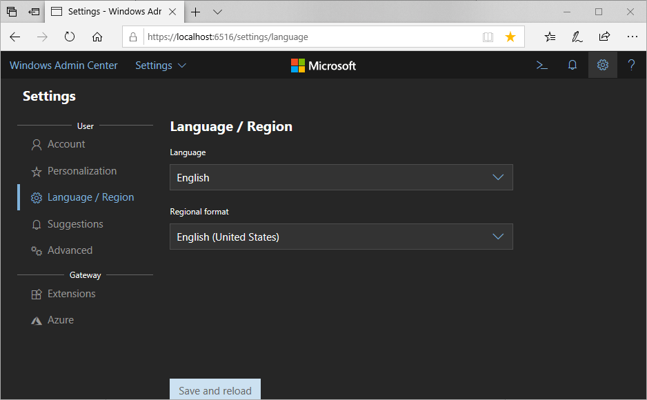 At the Windows Admin Center, you can go to Settings and configure the Personalization to choose your preferred color mode, in my case I have set the color mode to Dark mode.