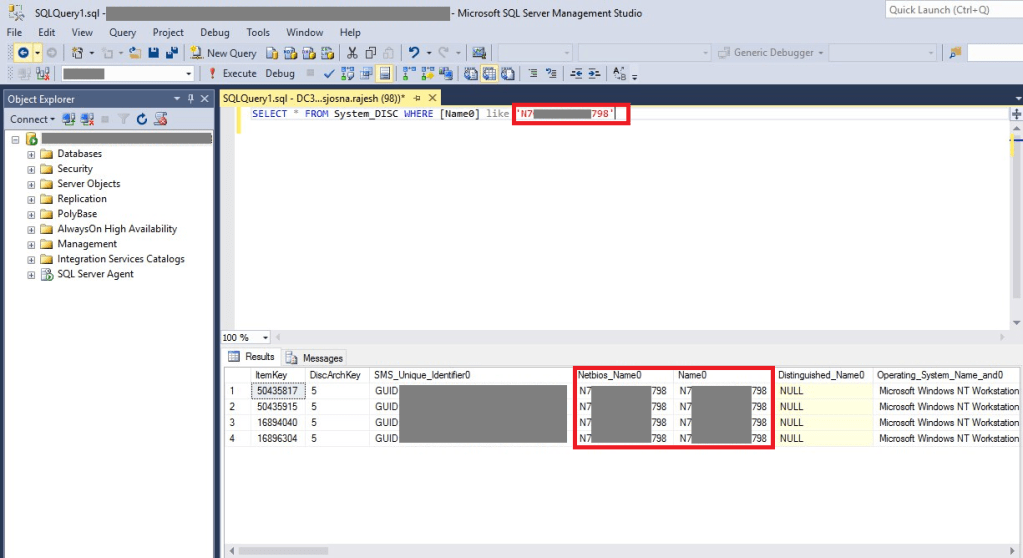 The command SELECT * FROM System_DISC WHERE [Name0] like ‘%ServerName%’ is giving me an error Invalid object name ‘System_DISC’